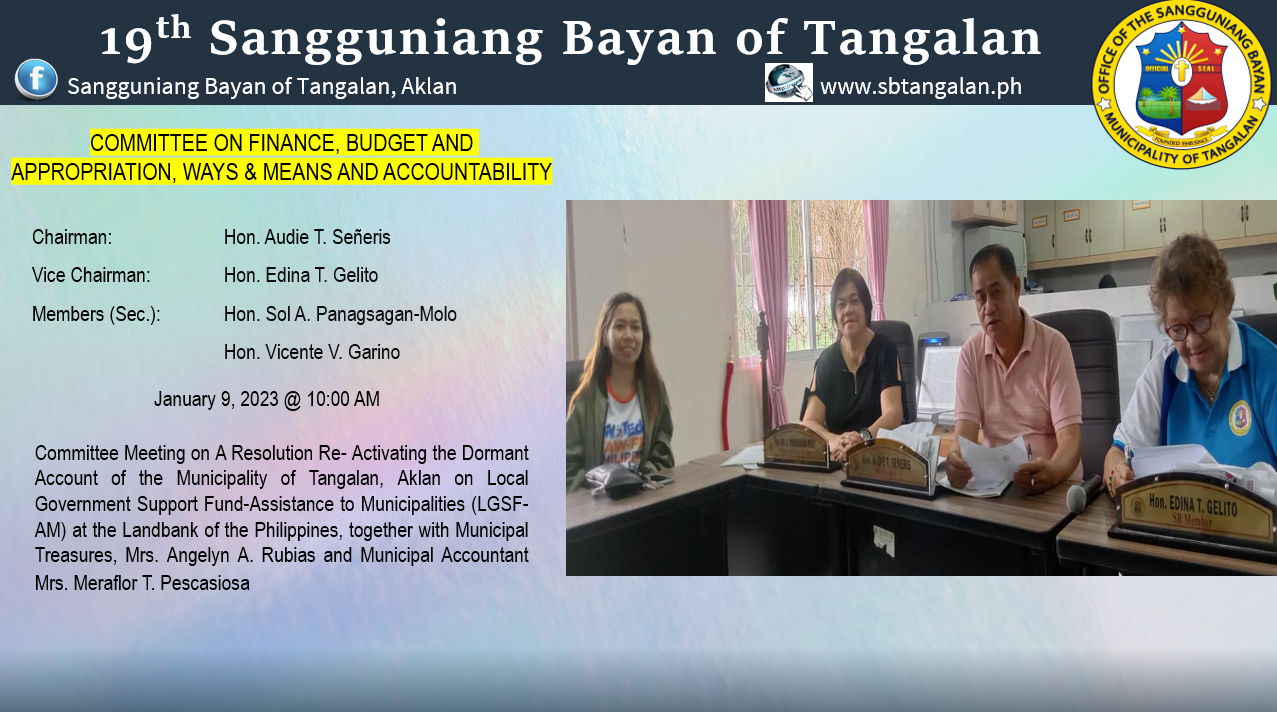 Committee Meeting on A Resolution Re- Activating the Dormant Account of the Municipality of Tangalan...